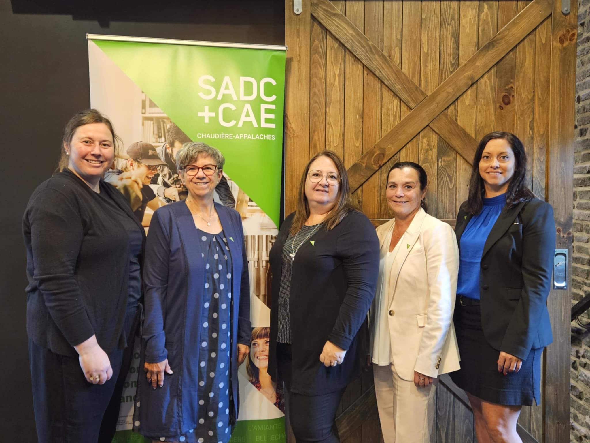 * Les directions générales des SADC et CAE de Chaudière-Appalaches. De gauche à droite : Laurence Montreuil, directrice générale de la SADC de Lotbinière, Mireille Thibault, directrice générale du CAE Montmagny-L’Islet, Katie Fortier, CPA, directrice générale de la SADC Bellechasse-Etchemins, Nathalie Patry, directrice générale à la SADC de l’Amiante et Karine Therrien, CPA, directrice générale du CAE Beauce-Chaudière.