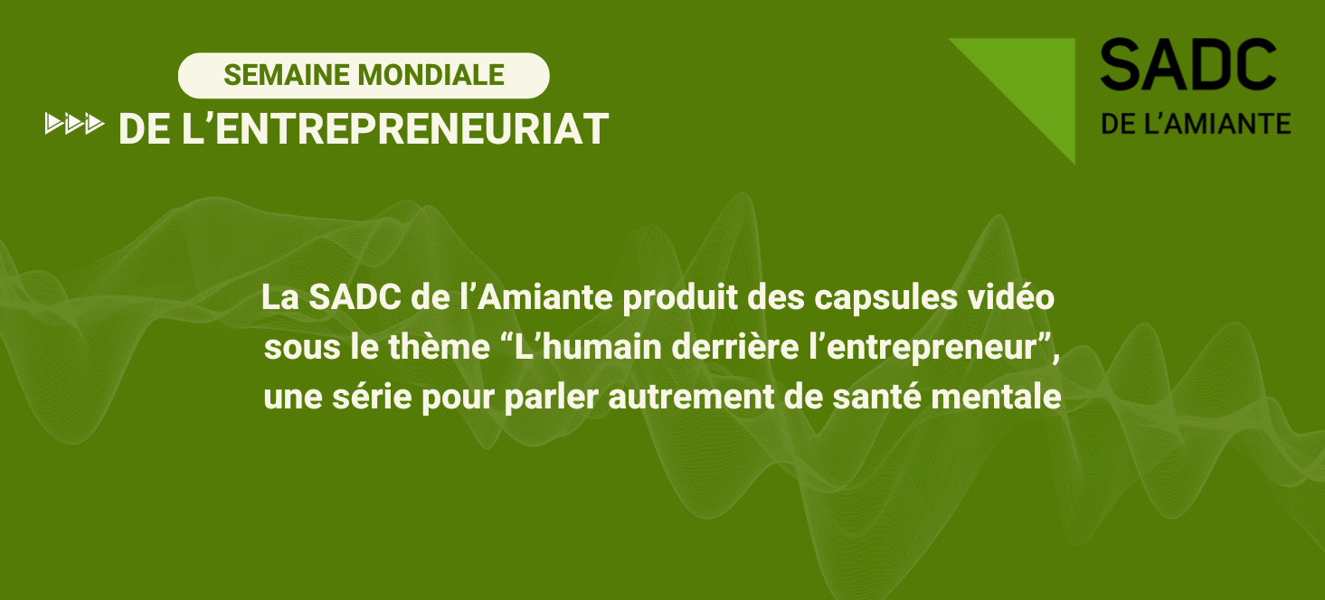 Dans le cadre de la Semaine mondiale de l'entrepreneuriat, la SADC s'est jointe à Accompagnement Alex et Alex afin de produire des capsules vidéos et d'ainsi informer les entrepreneurs sur les enjeux liés à la santé mentale en affaires.